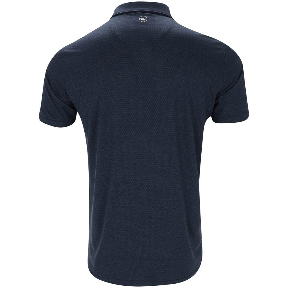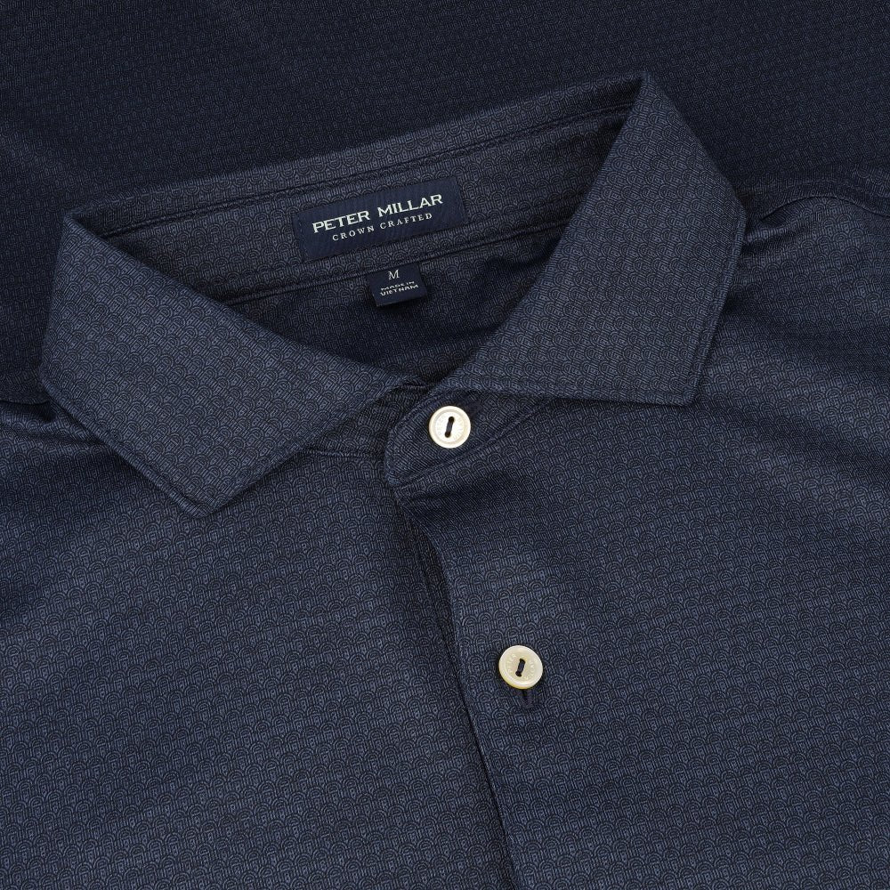 Clean style, exceptional comfort, and next-level stretch and softness. The Crown Crafted jersey polos bring a soft, plush feel with wicking, four-way stretch, easy-care and UPF 50+ sun protection. This shirt features a stylish jukebox print. Finished with a spread collar and detailed with mother-of-pearl buttons.