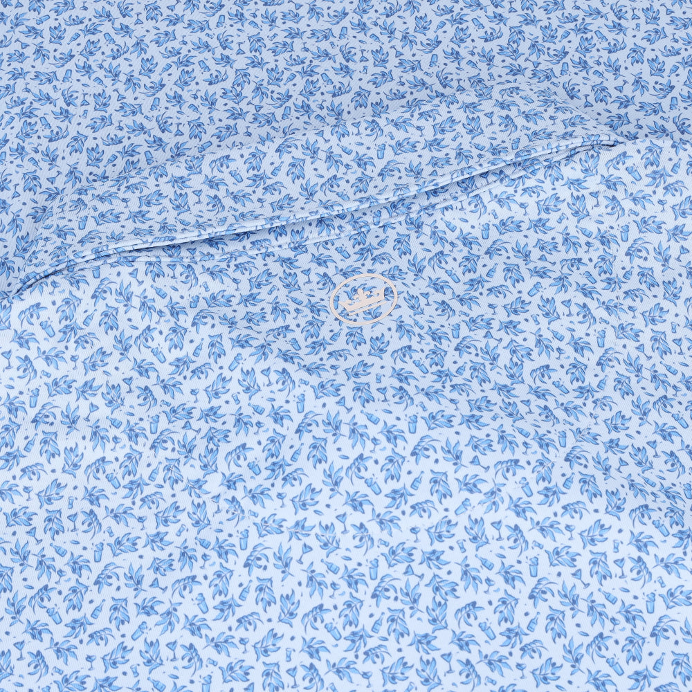Clean style, exceptional comfort, and next-level stretch and softness. Our Crown Crafted jersey polos bring a soft, plush feel with wicking, four-way stretch, easy-care and UPF 50+ sun protection. This shirt features a stylish botanical print. Finished with a spread collar and detailed with mother-of-pearl buttons.