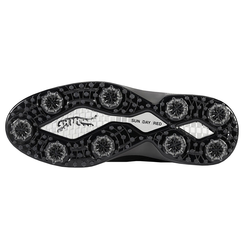 It has been estimated that Tiger has taken 40,000,000 steps on the course. The Sun Day Red Pioneer Cypress golf shoe is fueled by the unique insights only someone with 40,000,000 steps, 15 Majors and 82 career wins can bring. With Tiger’s direct input, Sun Day Red built the Pioneer Cypress from the ground up and from the inside out. One of Tiger’s most important requests was that the shoe features a sleek 6mm heel to toe drop, allowing the golfer to leverage the power of ground force, while not sacrificing support. A premium full grain waterproof leather upper provides unmatched style and durability, while the Tiger Stripe deboss treatment in the heel pays homage to Tiger’s greatness. A golf shoe is only as good as its fit, with that in mind supple calf skin leather is used for the liner. When the day calls for 36 holes, the Pioneer Cypress answers with all-day comfort provided two removable footbed options. As Tiger is known to challenge any shot from any lie, the shoe is constructed with a high-density TPU full ground contact plate with a 9-cleat configuration to deliver supreme traction in all conditions.