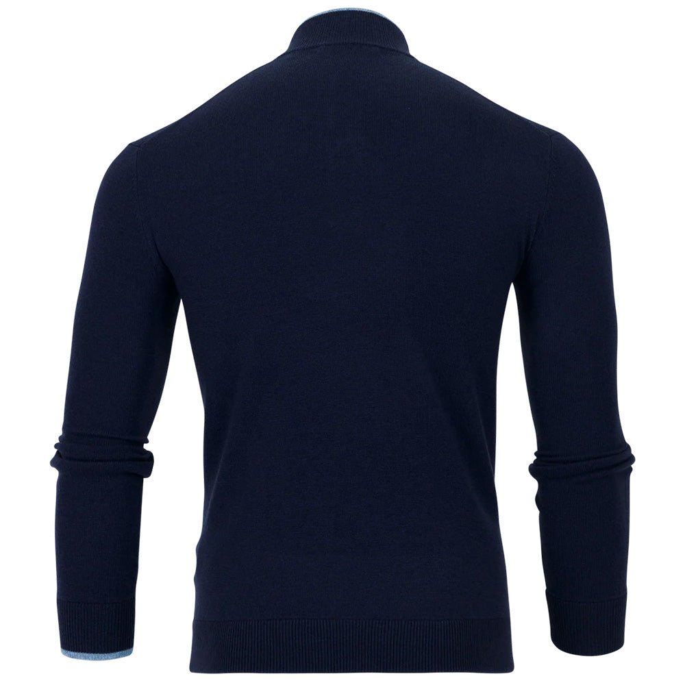 The Sebonack Quarter-Zip Sweater is crafted from a premium blend of wool and cashmere. Designed for buttery-soft comfort, this sweater keeps you light while providing warmth. Featuring a suede taping on the zipper placket and a crafted horn pull, it has Greyson's signature color contrast tipping on the left sleeve. Finished with rib-knit sleeves, collar, and hem.