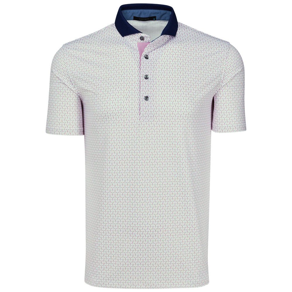 The Targhee Short Sleeve Polo is made from lightweight performance fabric that delivers breathable comfort, quick-drying function, and anti-odor technology. An all-over geometric interlocking pattern adds visual depth and character, framed by a four-button placket with contrast detailing under and at the top facing for subtle distinction. The open hem and cuffs provide a comfortable fit that moves with you. Designed for versatility from the course to an evening out.