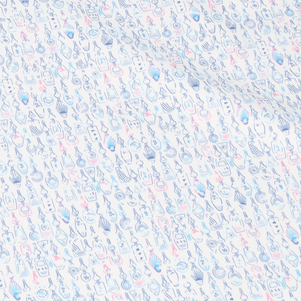 Clean style, exceptional comfort, and next-level stretch and softness. Our Crown Crafted jersey polos bring a soft, plush feel with wicking, four-way stretch, easy-care and UPF 50+ sun protection. This shirt features a stylish print inspired by vintage-style hotel keys. Finished with a spread collar and detailed with mother-of-pearl buttons.