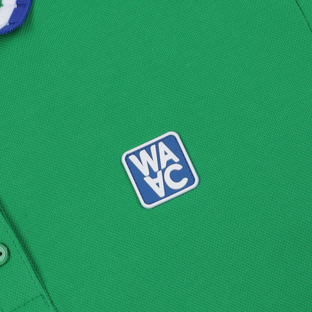 The Rib Collar Polo features a knit rib collar with color tipping, a long narrow placket with 3 buttons, and a fashionable patch logo for a finishing touch.