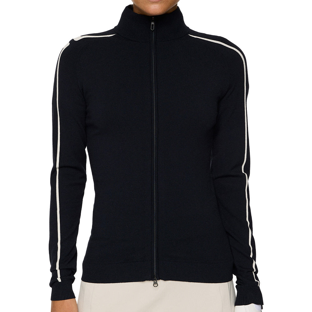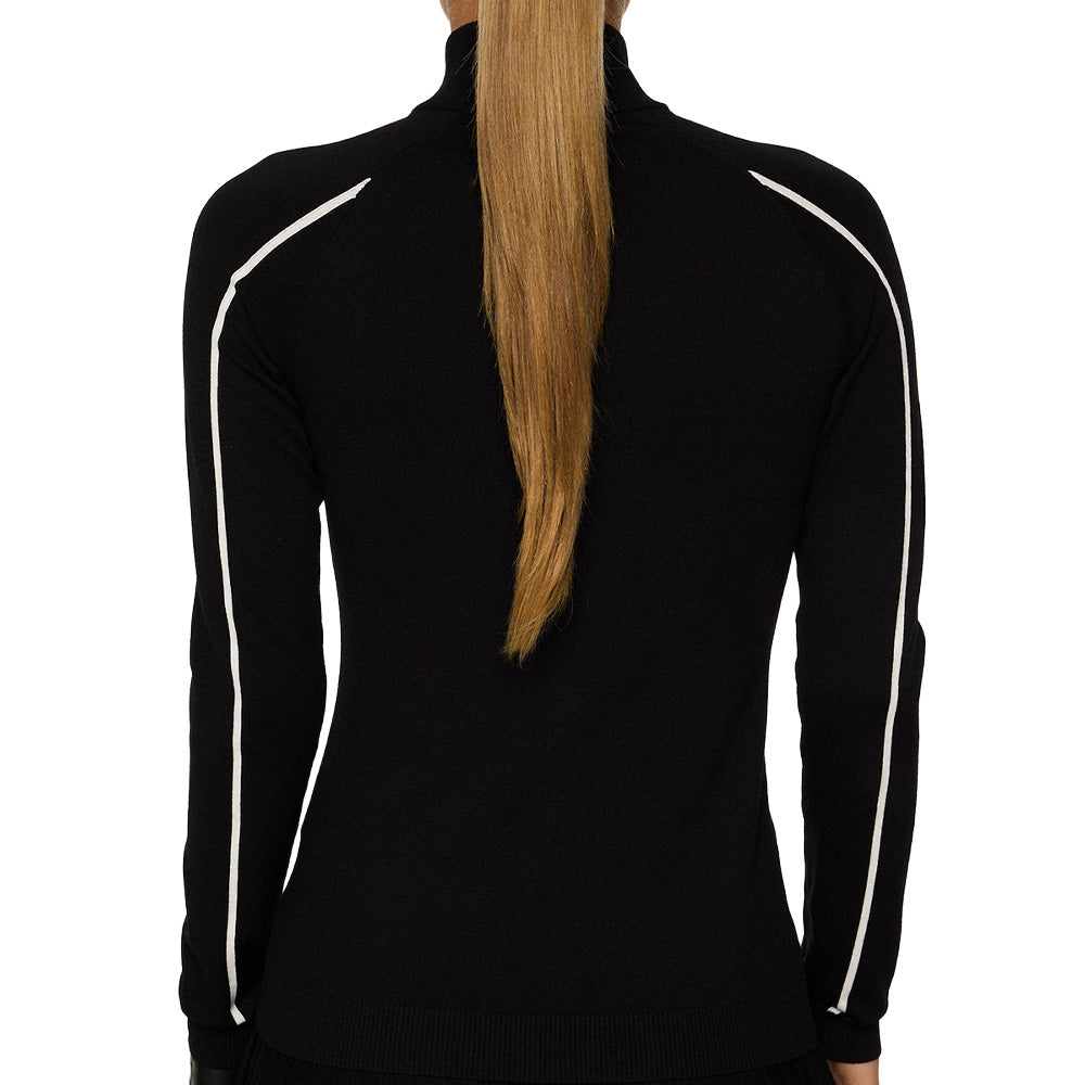 Sport-luxe comfort. The Aubree Sweater features branded contrast panels, a two-way zip, and stretchy knit. Lightweight and ultra-soft for effortless layering.