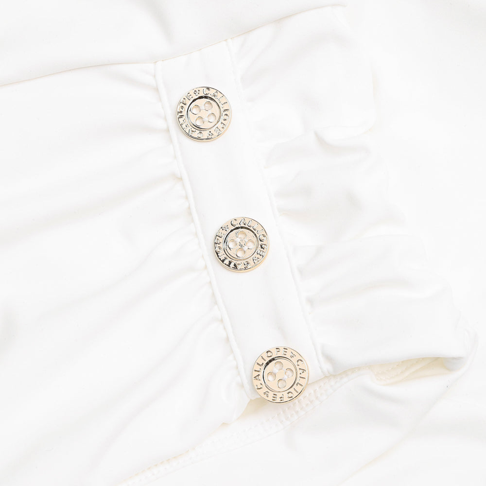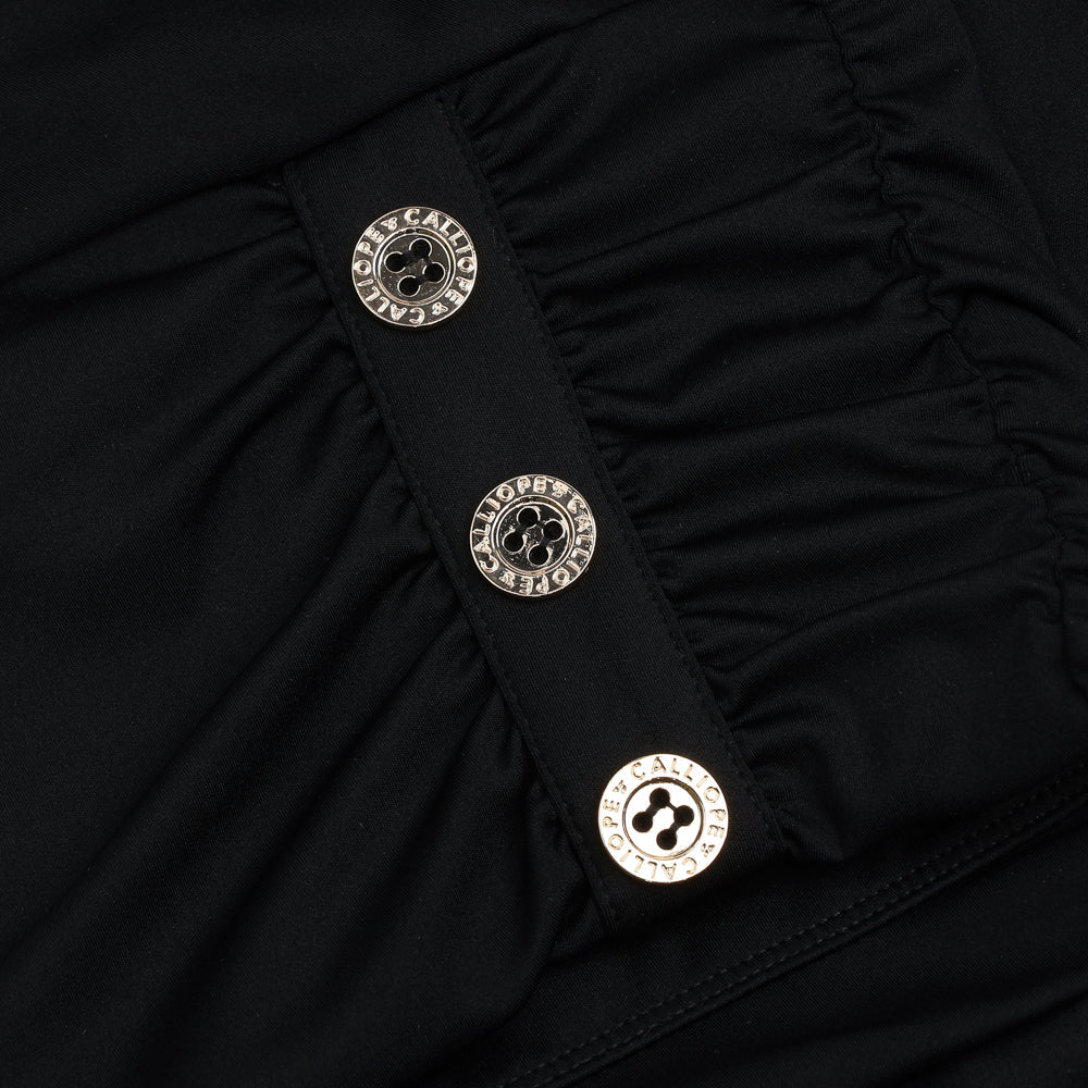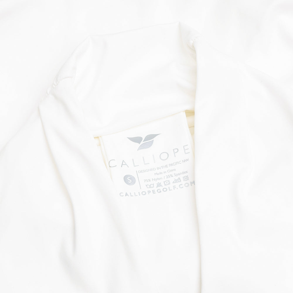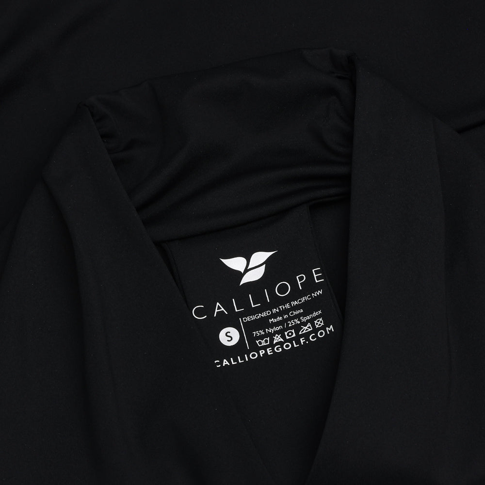 Our designers gently wrapped our technical 4-way stretch fabric into three articulated signature CALLIOPE buttons giving this top a dynamic and elegant look. Perfectly suited for a night out and an even better showpiece for your next round of golf. Better yet, it has a built in bra! You're welcome lady golfers everywhere.